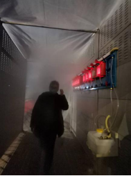 入場前,所有人員均需進(jìn)行入場登記,填寫入場自查表、入場前14天活動軌跡表及承諾書。入場后,項(xiàng)目部首先對進(jìn)場人員進(jìn)行政府疫情防控文件、公司疫情防控方案和項(xiàng)目疫情防控方案進(jìn)行交底。項(xiàng)目部辦公區(qū)、生活區(qū)進(jìn)行每日定點(diǎn)消毒,施工區(qū)、生活區(qū)張貼疫情防控標(biāo)語和宣傳海報,嚴(yán)控進(jìn)出人員,門崗對確因工作需要而進(jìn)出人員嚴(yán)格實(shí)行出入體溫測量、登記。