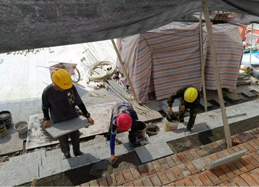 項目現場,一幅幅熱火朝天的建設場面蔚為壯觀。為保證秋季順利開學,項目部管理人員堅守一線,夜以繼日協調調度,確保每一個施工環節高效順暢。工人們更是干勁十足,以飽滿的熱情和精湛的技能,全力以赴投入到緊張的施工之中,每一磚一瓦都凝聚著他們對未來學子的深切期望。