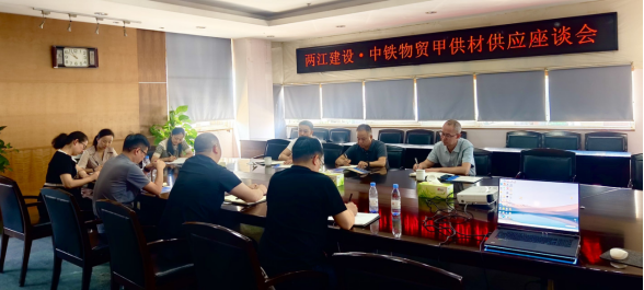 7月16日上午,兩江建設公司中國中鐵物貿集團有限公司就甲供材供應事宜開展座談交流雙方圍繞深化供應鏈協作進行深入探討。
