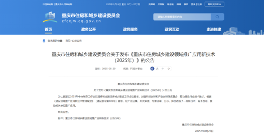 重慶市住房和城鄉建設委員會發布了《關于重慶市住房城鄉建設領域推廣應用新技術(2025年)評審結果的公告》。經廣泛征集、形式審查、專家評審、公示,全市初步遴選24項技術擬作為2025年重慶市住房城鄉建設領域推廣應用新技術。兩江建設公司申報的兩項技術成功入選。